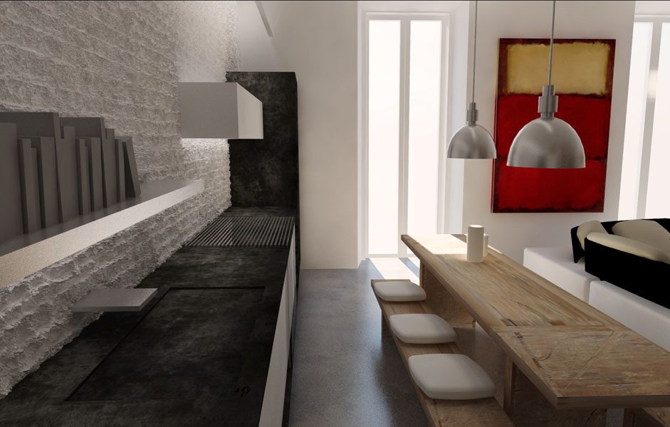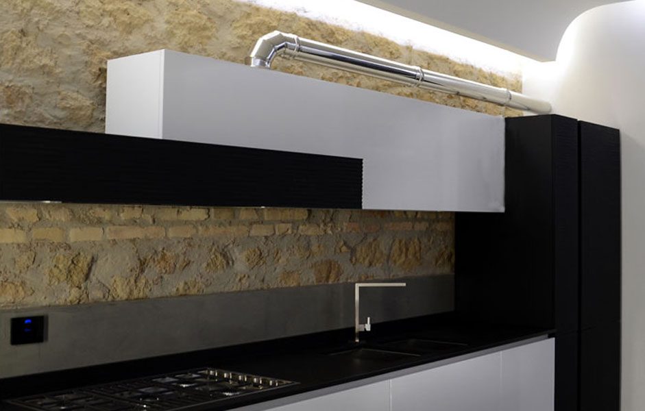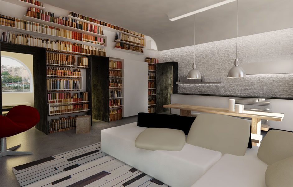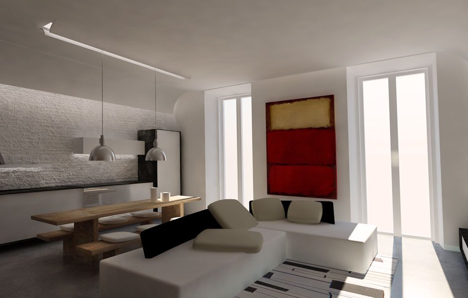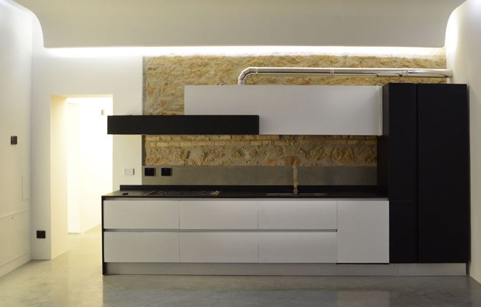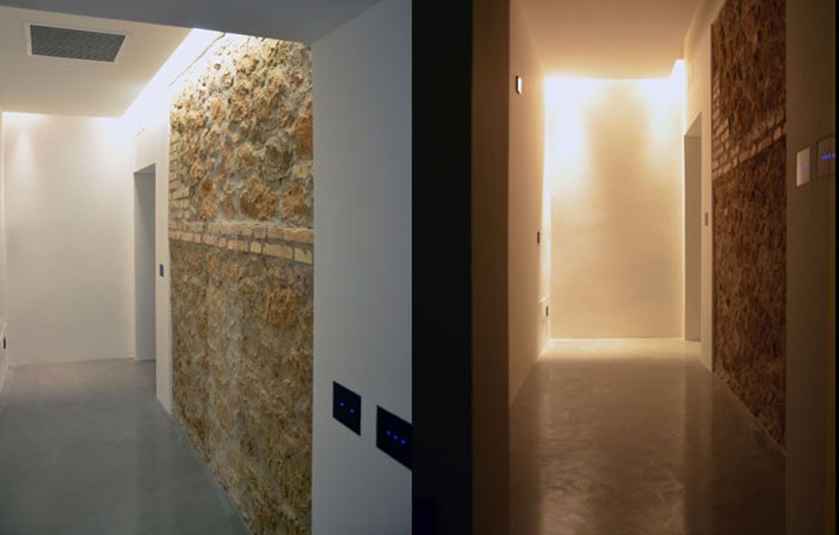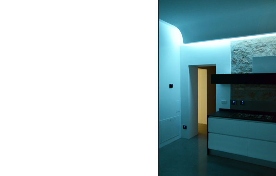 Collocato all’interno di un edificio dei primi anni del ‘900, l’appartamento è stato oggetto di una completa ristrutturazione interna. In alcuni punti si è deciso di portare alla luce la muratura composta da una tessitura mista di laterizio e tufo. Elemento fondamentale del progetto è l’impiego della luce, sia naturale che artificiale, forse proprio quest’ultima caratterizza maggiormente gli spazi conferendogli un aspetto moderno. Significativo è anche lo studio degli spazi interni, di fatti nonostante le modeste dimensioni l’appartamento risulta essere composto da una cucina, living, due bagni, una camera da letto matrimoniale ed un piccolo studio / stanza degli ospiti.