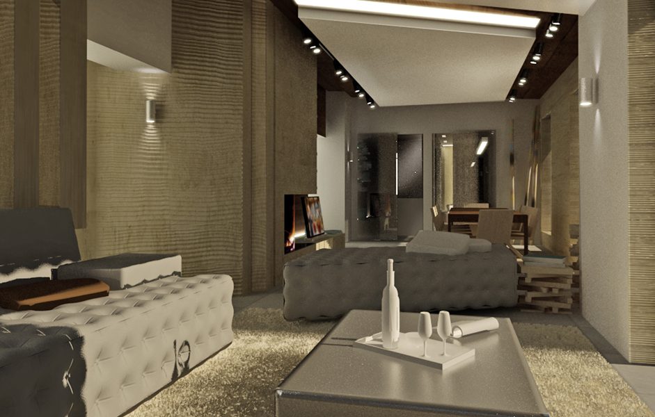 Il grande living è uno spazio caldo e accogliente, contraddistinto dalla cura per i dettagli e dall’impiego di materiali pregiati.
