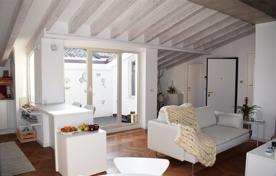 L’intervento riguarda il recupero di una mansarda non abitabile sita nei pressi del centro storico.