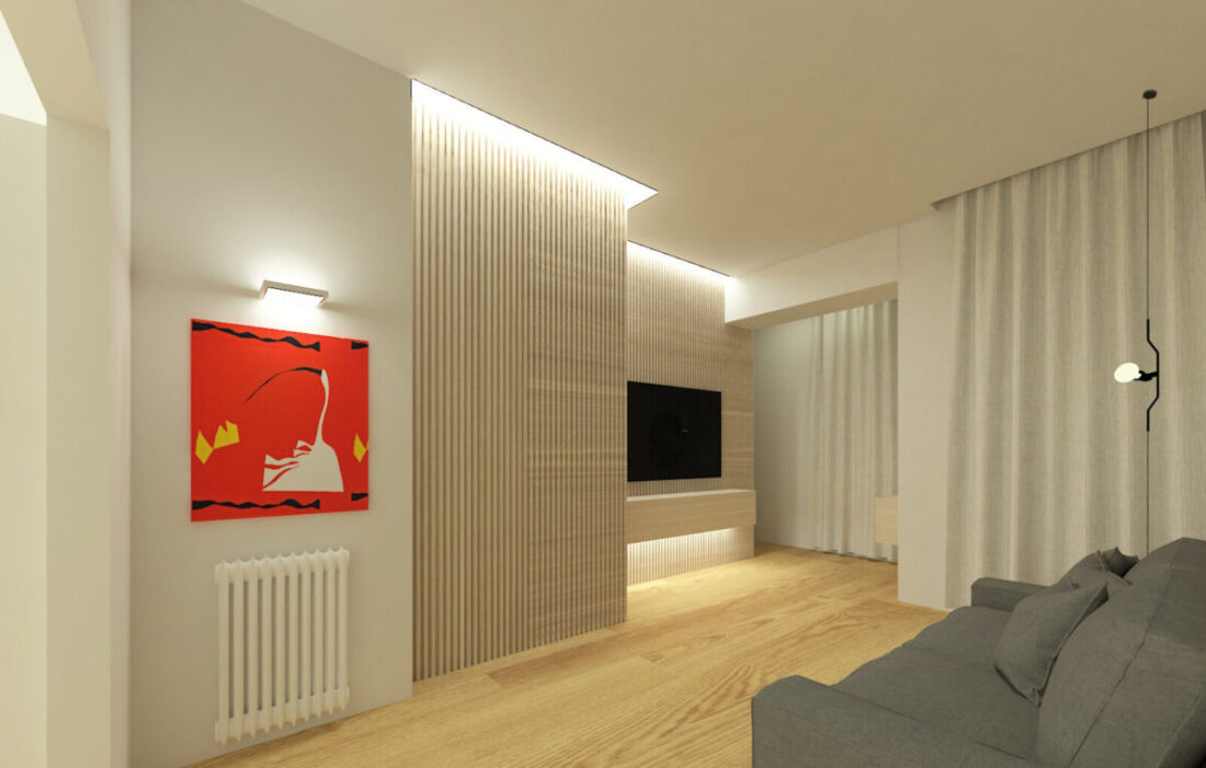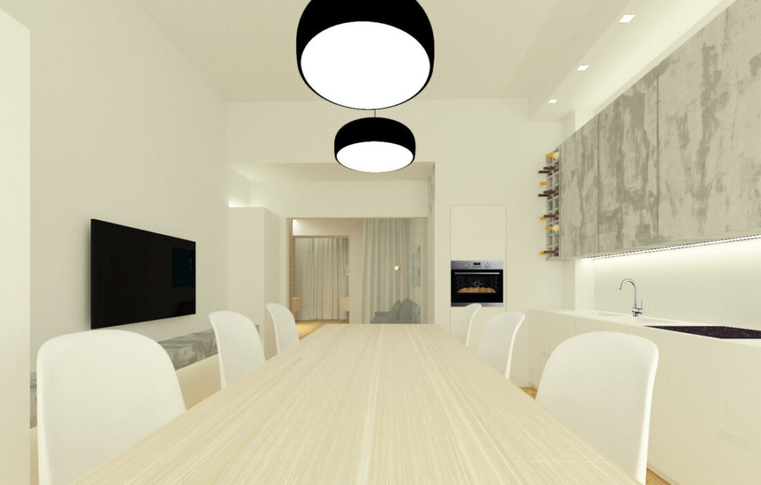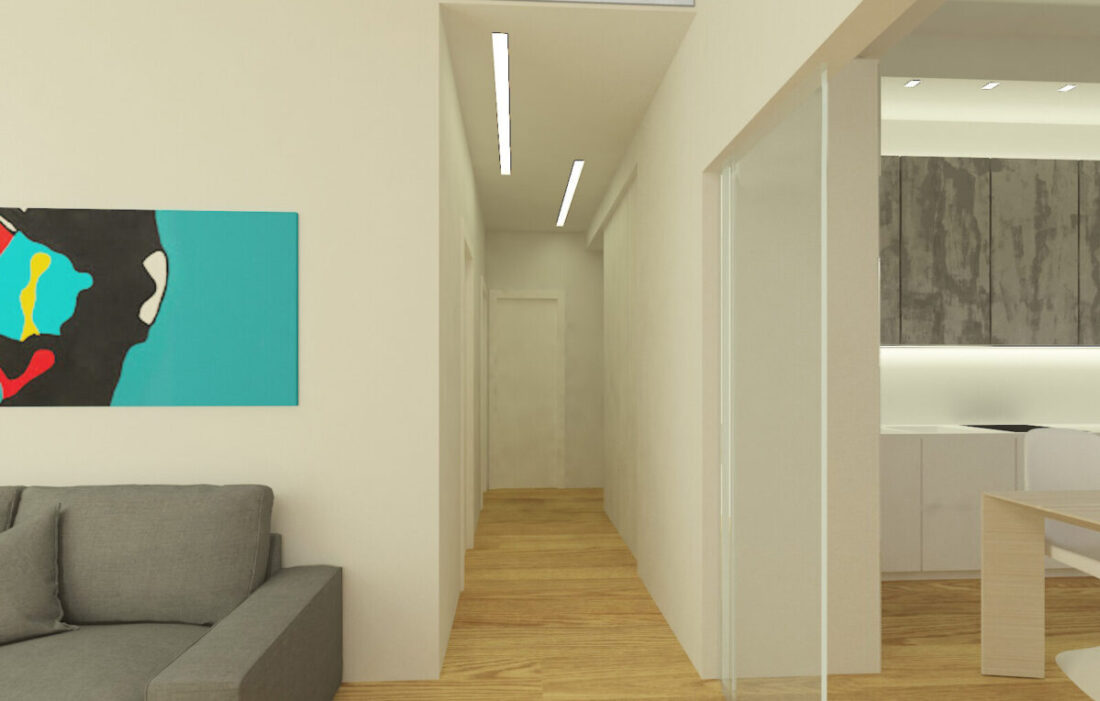 In questo progetto a Milano l’obbiettivo era modernizzare la zona giorno, creando degli spazi multifunzionali ed integrati.