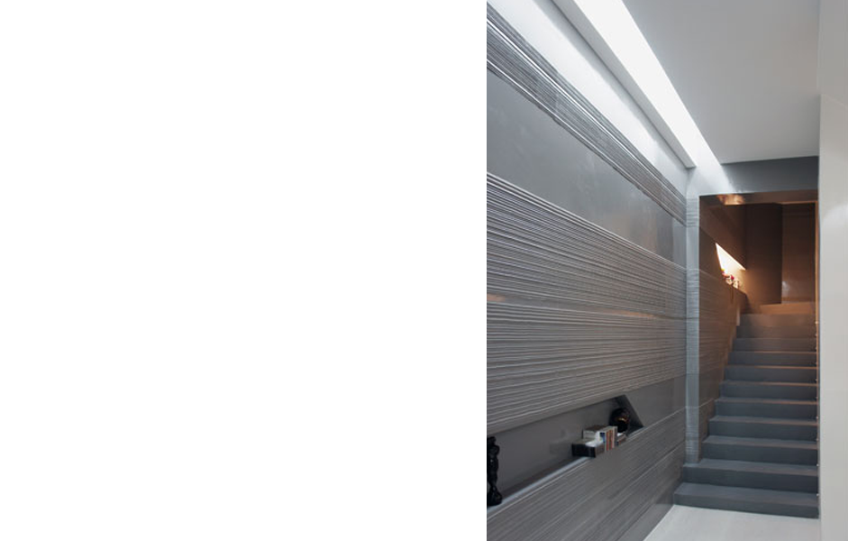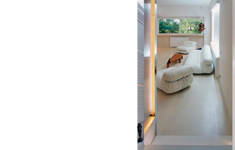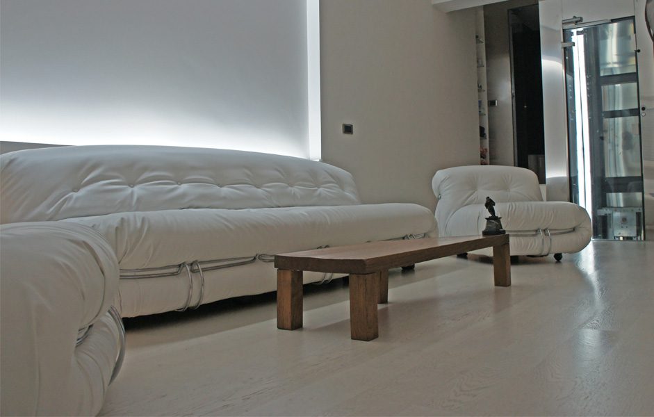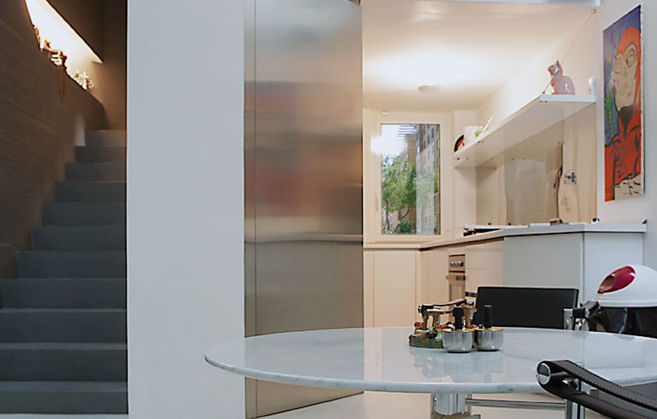 Il progetto riguarda la conversione di un’ex bottega artigianale in abitazione. Caratterizzato dall’utilizzo di materiali industriali come resina e metallo accostati a materiali abitualmente impiegati nelle abitazioni come il parquet in legno chiaro. Nel progetto si ritrova la tematica dell’open space, di fatti eccetto i servizi igienici, gli ambienti non presentano soluzione di continuità. La stanza da letto ricavata con una semplice vetrata dalla zona living, risulta spazialmente in continuità con il resto dell’abitazione.