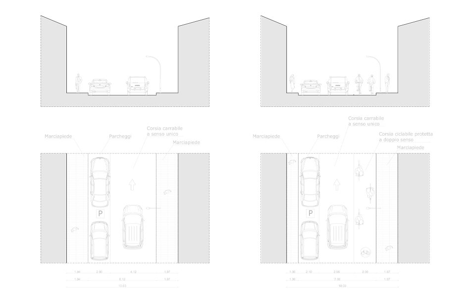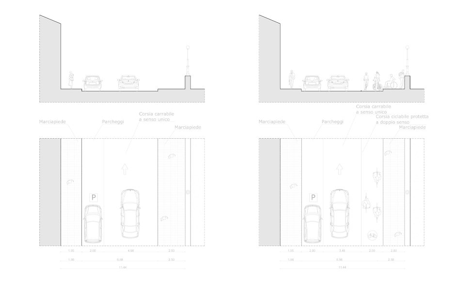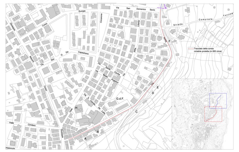 – la corsia ciclabile diventerebbe un’infrastruttura a servizio di diverse realtà quali gli uffici dell’Agenzia delle Entrate, la Caserma della Guardia di Finanza, l’Ospedale Civile e dell’Istituto Salesiano;