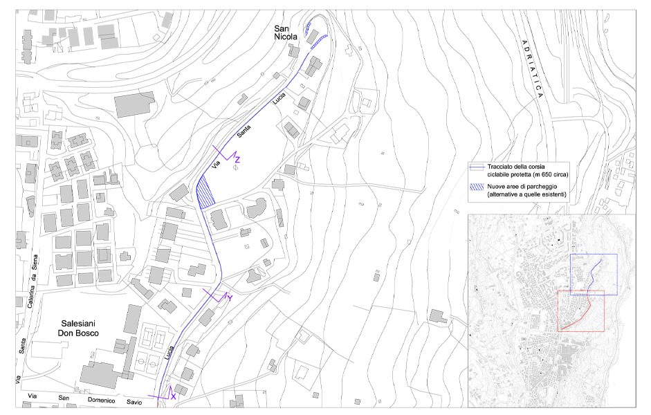 La proposta per la realizzazione di una corsia ciclabile protetta in via Santa Lucia è stata effettuata all’Amministrazione Comunale motivandola con diversi aspetti, come ad esempio: