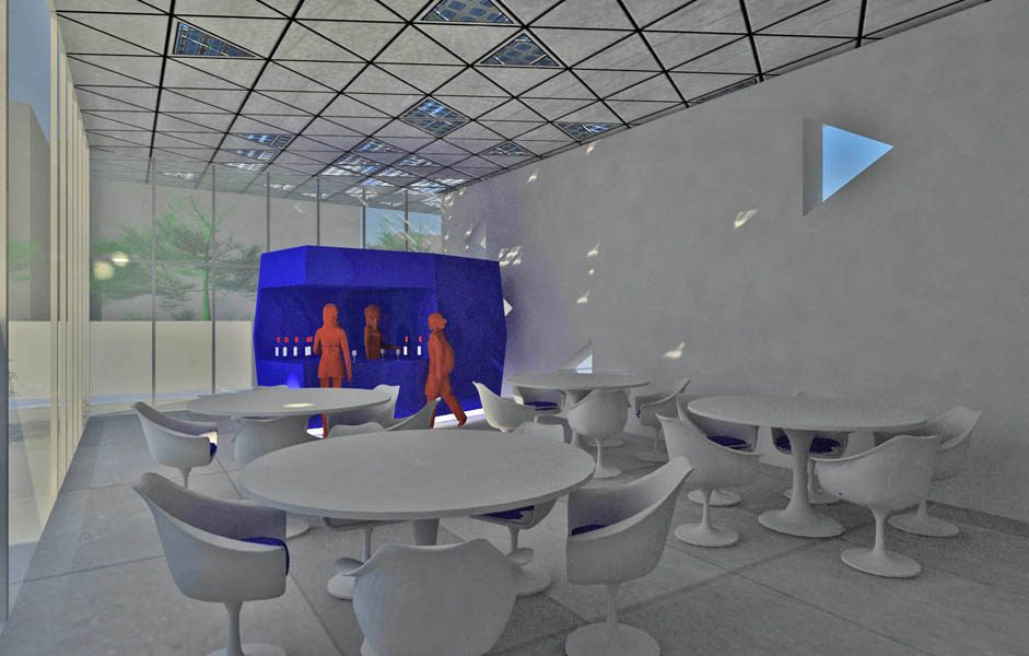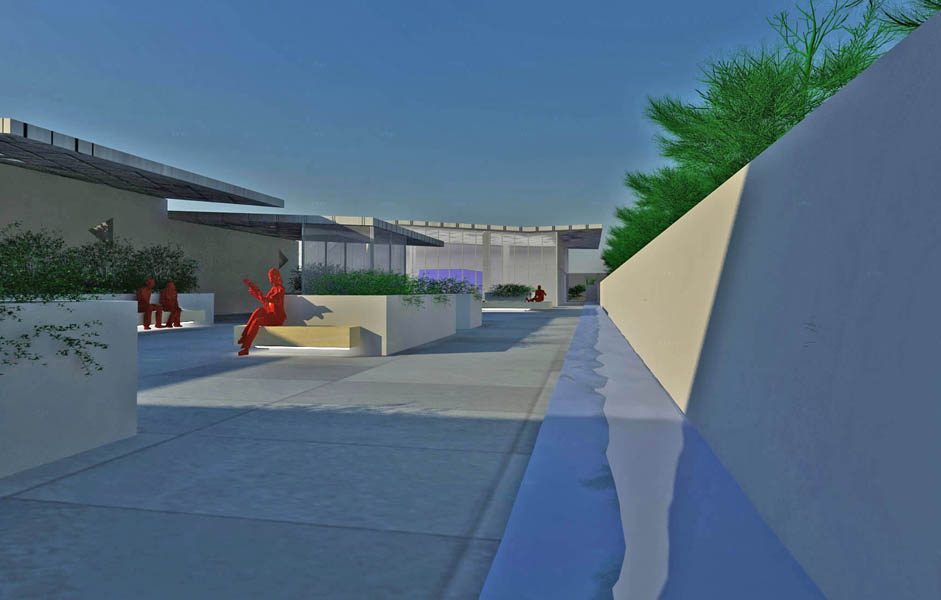 Detti spazi commerciali pur essendo collocati al penultimo livello saranno caratterizzati dalla presenza simultanea della luce artificiale e naturale, di fatti quest’ultima penetrerà all’interno dei negozi grazie alle lastre di vetro facenti parte della copertura, e anche attraverso i lucernari costruiti all’interno della piazza scoperta soprastante.