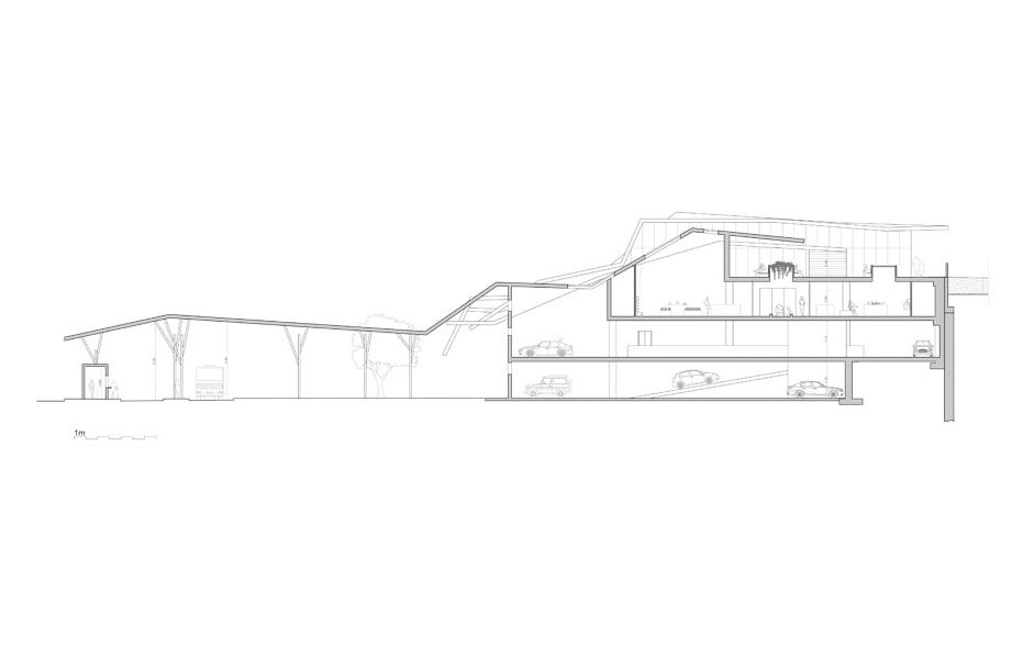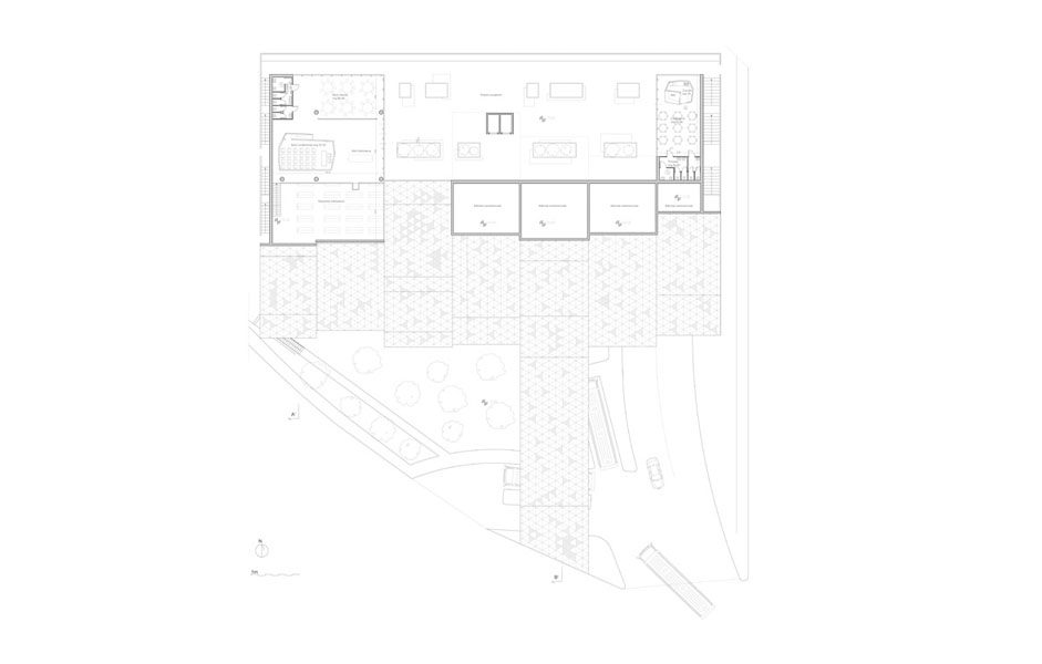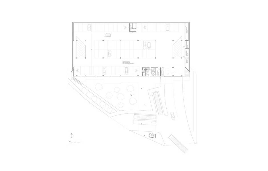 Il progetto prevede la conservazione dei primi due livelli dell’attuale parcheggio, attuando degli interventi minimi per garantire la sicurezza antincendio e l’adeguamento dei servizi igienici.