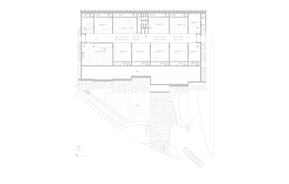 Il piano secondo è caratterizzato dalla presenza di undici attività commerciali di diversa metratura destinate ad essere affittate in maniera tale da contribuire all’ammortamento dell’opera.