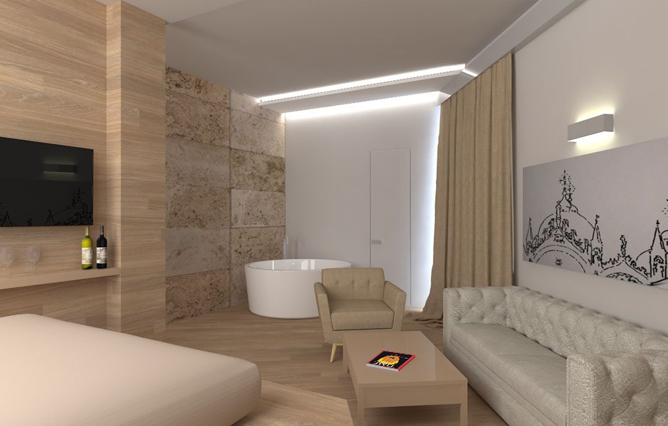 Il progetto prevede la realizzazione di alcune suite di albergo recuperando degli spazi esistenti inutilizzati.